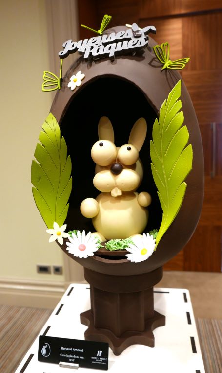 Véritable « première » en Belgique, l’Hôtel Amigo à Bruxelles expose actuellement une vingtaine d’œufs de Pâques « designés » par les meilleurs chocolatiers belges. Débutée le 28 mars dernier, l’expo de ces œufs spectaculaires (50 à 60 cm de haut) est visible jusqu’au 10 avril prochain dans tout le lobby et dans le restaurant « Bocconi » du célèbre hôtel voisin de la plus belle place du monde !