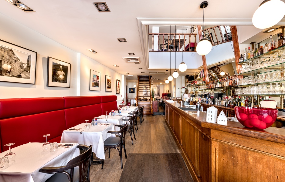 Le côté chaleureux de l’aménagement, les banquettes rouges et l’atmosphère historique avec quelques touches modernes dans la déco (photos noir/blanc Yellow Corner), le grand bar de bois ancien ou encore le nappage blanc des tables sont d’emblée appréciés. C’est à tout le moins notre impression après une première visite à cette nouvelle maison souvent fréquentée par le passé.