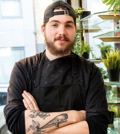 J’ai repris la pâtisserie, qui était une boulangerie-pâtisserie traditionnelle, il y a huit mois, poursuit-il. Avant cela, j’ai moi-même suivi une formation de boulanger-pâtissier classique. J’ai fait le CEFA à Liège et une spécialisation en chocolaterie-confiserie. J’ai travaillé pour quelques patrons et l’un d’eux, fabricant de macarons pour la grande distribution, m’a encouragé à poursuivre mon idée d’ouvrir une pâtisserie vegan.
