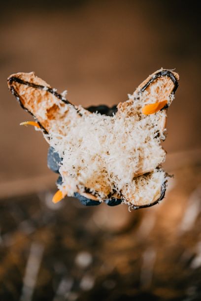 Une première pour Pastorale comme pour le monde de la gastronomie : Bart De Pooter imagine le plateau à beurre personnalisé. Comme un plateau à fromages que l’on choisit en fonction de ses propres goûts du moment. Sur base d’un beurre de ferme locale, il crée une composition singulière variant entre trois types de saveurs différentes. Beurre floral, beurre au bœuf séché ou beurre au poisson fumé. Originale et indescriptible ici mais aussi bon, surprenant, que délicieux ! Et ce sans oublier de succulents petits pains maison.
