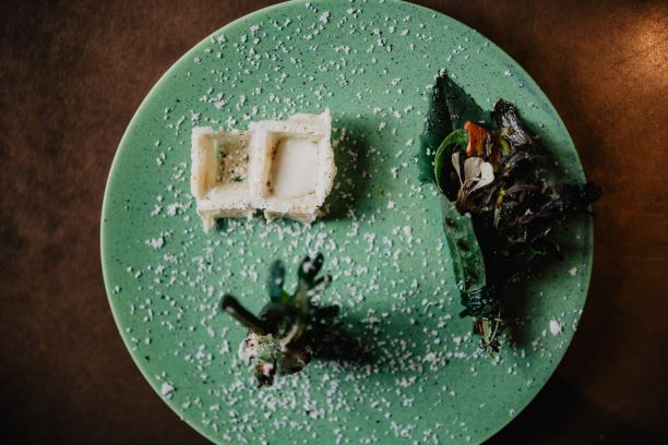 Toujours dans un heureux mariage d‘esthétisme et de saveurs, la Fleur de courgette abrite un ris de veau rôti à la graisse de wagyu. A cela sont ajoutés, courgette, aneth, raifort, estragon et fromage de chèvre local (Flandre) ressemblant à un brie de Meaux. Ici, l’on dirait que l’Eden tout entier se trouve dans l’assiette !