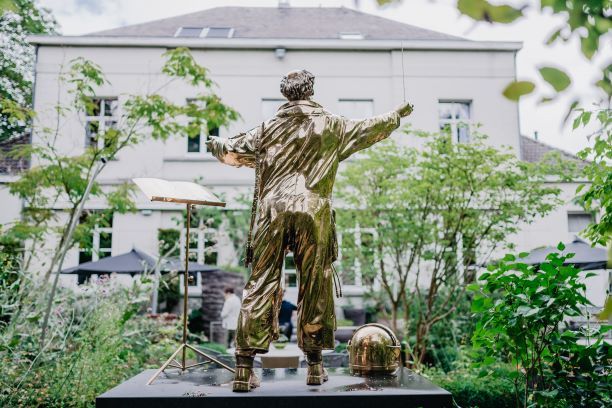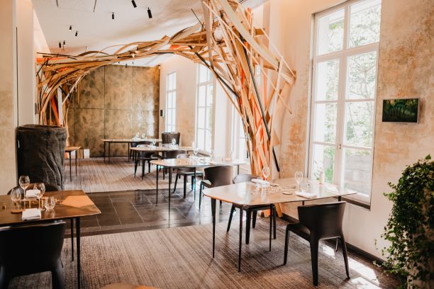 Outre cette efficacité, le cadre de la salle de Pastorale fait beaucoup également pour augmenter le plaisir que l’on a à s’y attabler. De la gigantesque sculpture boisée d’Arne Quinze aux tables créées sur mesure par un artisan inventif à une vaisselle, elle aussi, semblant personnalisée à la cuisine créative de Bart De Pooter. Sans compter avec la sculpture de Jan Fabre représentant Dirk Frimout au jardin.