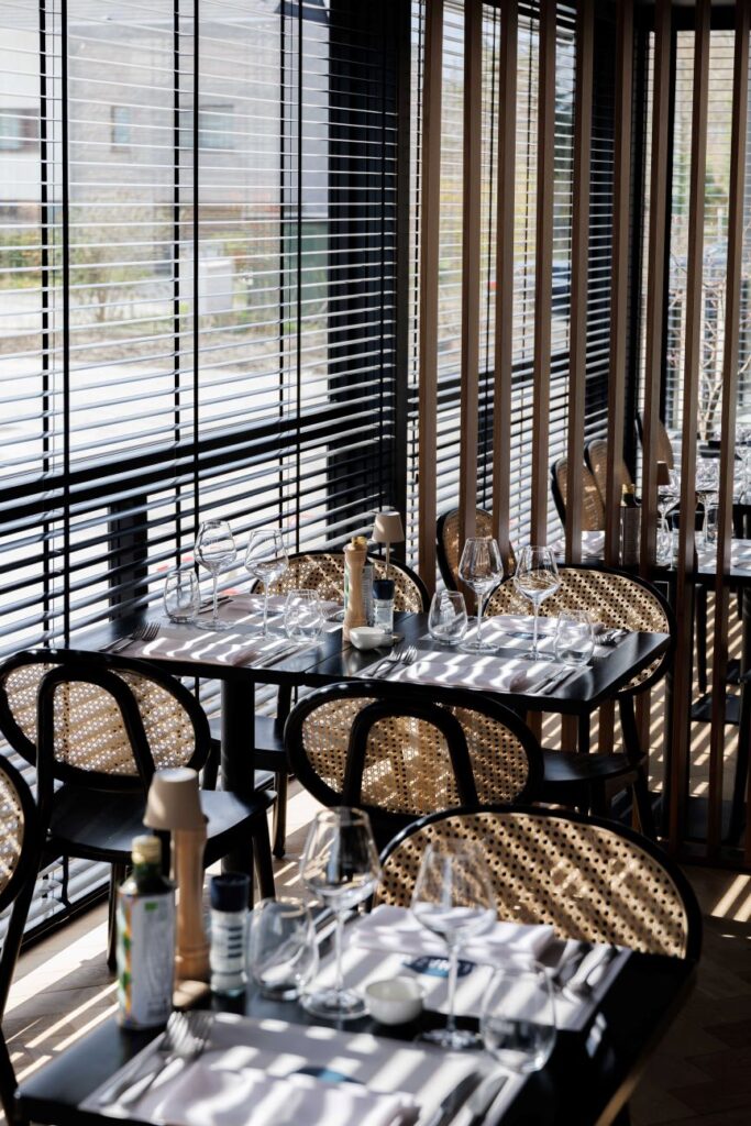 Derrière cette nouvelle aventure, le duo solaire, Julie et Olivier, ont ainsi métamorphosé avec passion et générosité, cette enseigne truffée d’élégance contemporaine et de bon sens culinaire. Dès l’entrée, le charme opère : stores noirs à lamelles filtrant la lumière, tables d’ébène, comptoir en bois et esprit de bistrot, grand certe mais tout aussi chaleureux qu’un bistrot de quartier. Une atmosphère à la fois chic et cosy où chaque détail est une promesse de bon moment à venir. Et si, en mars dernier, lors de notre visite, la terrasse n’était pas encore « fréquentable » pour raison climatique, il est a parier qu’avec le beau temps renaissant ce grand espace de plein air est déjà prise d’assaut, midi et soir !