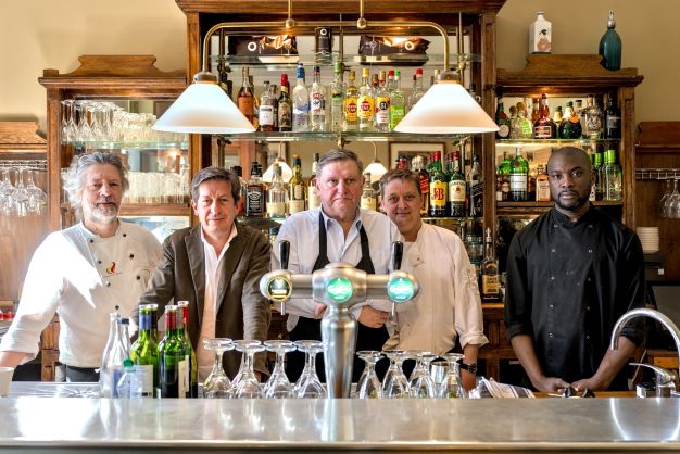Autre cerise sur le gâteau, cette cuisine on la doit au retour du Chef Jean-Pierre Gascoin. Chef bien connu au Toucan-sur-Mer et bien avant cela, chef que l’on suit depuis ses débuts en Belgique : « Chez Marie » (Etangs d’Ixelles), au « Fils de Jules » (Ixelles). Ce chef breton d’origine (à gauche sur la photo ci-dessous) est donc de retour sur la scène artistico-culinaire bruxelloise et, depuis mars dernier, fait déjà courir du beau monde d’épicuriens vers ce petit coin de la Place Saint-Job.