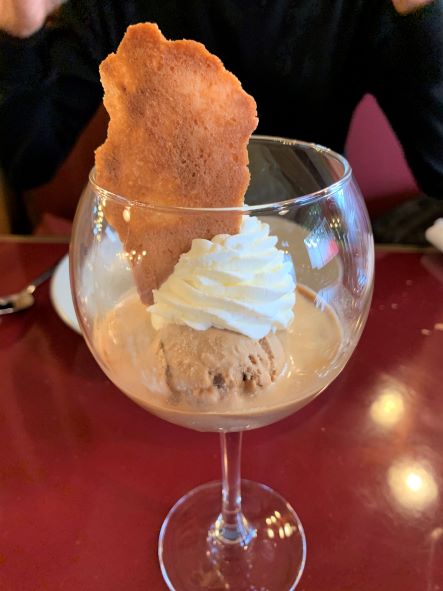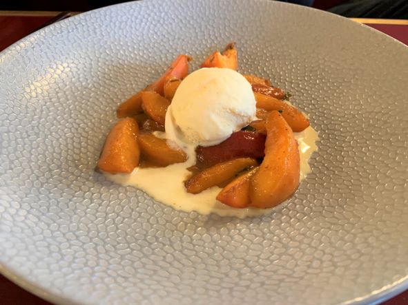 En dessert, difficile de bouder la suggestion, les abricots rôtis au basilic et glace vanille ou encore le gourmand café glacé. Bien entendu, l’hésitation pouvait aussi faire changer d’avis pour une vraie dame blanche (sauce chocolat noir), des pruneaux d’Agen à l’Armagnac, une crème brûlée à la vanille de Madagascar, un sorbet colonel, un baba au rhum agricole et ananas rôti. Ce sera donc pour une autre fois … pitié pour … notre foie !