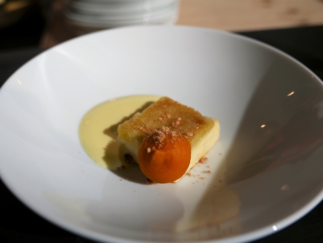 -les pommes de Pierre Toubon à la cassonade, confiture au lait de ferme, crumble, sorbet au cidre imaginé par Thomas Troupin du restaurant La Menuiserie (www.lamenuiserie.eu) servi avec grand sourire de la dynamique de charmante compagne du chef, Marie-Charlotte Portois.