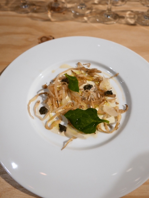– du kimchi de chou blanc, crème d’ail, tapenade d’algues réalisé par Nicolas Decloedt du restaurant Humus X Hortense à Ixelles (www.humushortense.be)