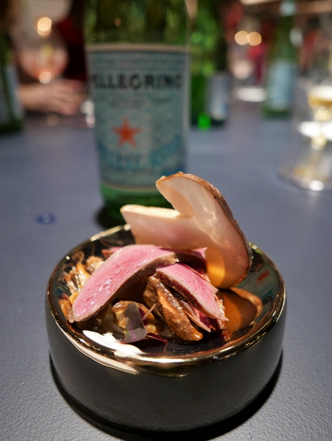 Pour l’heure et après notre passage à l’ouverture, nous garderons le tout bon souvenir de l’atelier de Bart De Pooter ayant préparé, sous nos yeux, un singulier plat de cœur de veau maturé (30 jours), aux cèpes et à la crème aigre. Ceci présenté, en grande première, dans l’espace S.Pellegrino et surtout dans la superbe vaisselle que l’emblématique designer belge, Charles Kaisin, a réalisée pour la notoire eau italienne.