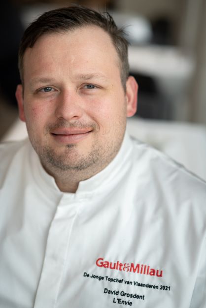 Dans son restaurant L’Envie de Zwevegem, David Grosdent fait de plus en plus parler de lui en hauts lieux gastronomiques. Et pour cause : il est à la fois étoilé Michelin mais aussi Jeune Chef de l’Année 2021 pour la Flandre au Gault&Millau. Il fait partie des Associations de North Sea Chefs, des Jong Keukengeweld et des Young Masters et affiche une belle cotation de 15,5/20 au Gault&Millau. Originaire de Wallonie, il est installé en Flandre depuis 2015.