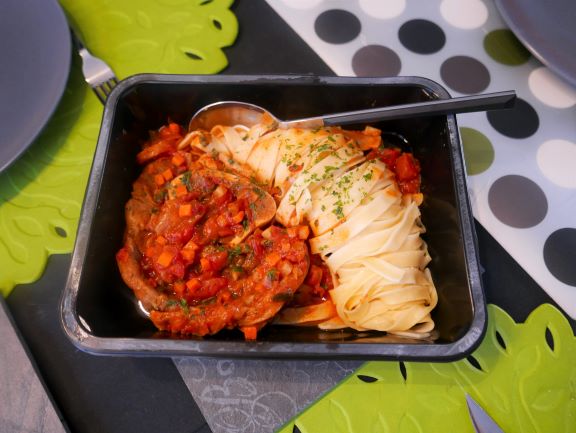 Au début de l’été, nous y avons emporté quelques plats préparés de très bon goût et à tarifs très intéressants pour une belle qualité artisanale. Entre les plats méditerranéens ou les grands classiques de cuisine belge, difficile de faire son choix. Plus classiques pour commencer, les premiers plats testés étaient donc : un osso bucco à l’italienne, des boulettes sauce tomate, des asperges sauce hollandaise avec crevettes grises fraîches, des carbonnades flamandes. Très bien et très facile à ramener chez soi quand on n’a pas le temps de cuisiner.
