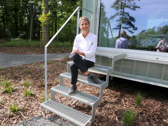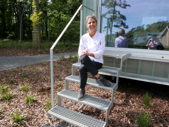 Marie raconte son parcours, sa famille, sa nouvelle vie à La Roseraie : « Au départ, je ne me destinais pas à devenir cheffe et à reprendre la Roseraie, raconte-t-elle. J’avais fait des études d’interprétariat (qui m’ont d’ailleurs menée à Londres) mais j’aurais tout autant aimé être décoratrice d’intérieur. Cela me passionne tout autant. Ceci dit, petite j’étais souvent à côté de mon père dans la cuisine comme tout enfant de restaurateur et comme l’une de mes deux filles qui est souvent aussi à mes côtés en cuisine. C’est seulement lorsque mes parents ont envisagé de remettre que j’ai beaucoup réfléchi et qu’après m’être formée au métier, j’ai décidé de quitter Londres avec mari et enfants et de venir nous installer ici. Nous habitons sur place et c’est une grande qualité de vie qui nous est offerte ici à Modave. Même si je dois énormément travailler car nous ne sommes pas nombreux en cuisine, seulement trois personnes et que les clients eux sont bien présents ! Tout cela est passionnant. Le fait de pouvoir faire la cuisine que j’aime, où je peux moderniser la tradition comme le fait d’avoir pu faire les travaux de modernisation de la maison, ou encore l’ajout des shelters, qui ont été finalisés pour ce printemps – et il y en aura encore d’autres qui suivront – et la piscine à côté de la serre, tout est vraiment très attrayant et je suis ravie que la clientèle suive et vienne aussi nombreuse s’attabler ou séjourner chez nous. »