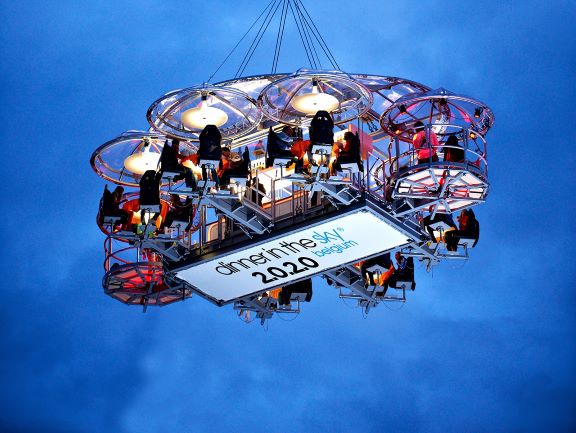 Avec tables en extérieur, avec distanciation respectée et avec envolée épicurienne au 7e ciel assurée, Dinner in the Sky, nouvelle version, revient en Belgique dès le 31 mai prochain !