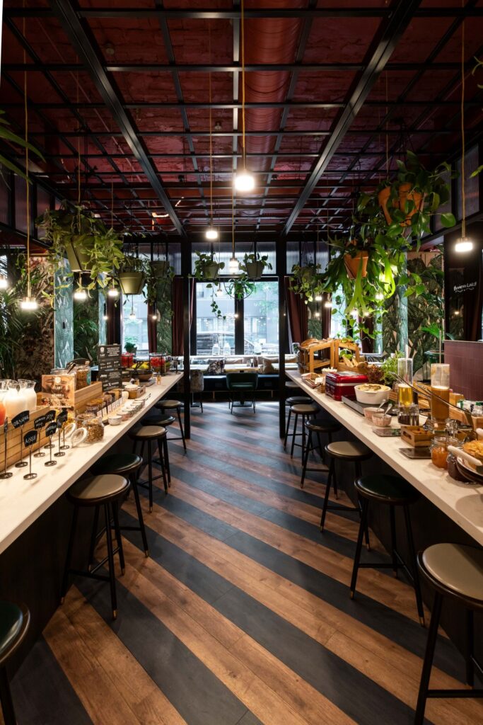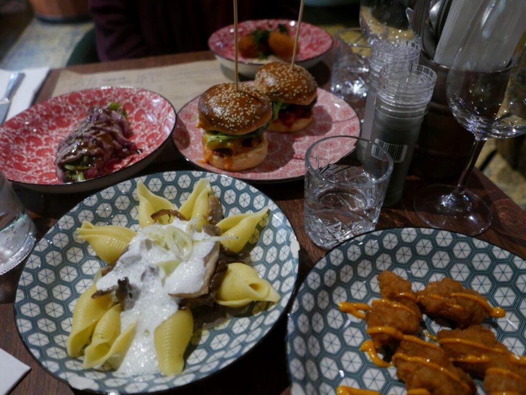 La carte propose un choix de petites préparations soit pour carnivores soit pour végétariens ou encore un « Chef’s Spécials » en plusieurs plats différents. Soit de 2 ou 3 services, du lunch (2 services – 20 €) aux 3 services (36 et 47 €) dont un avec choix de protéines. Le menu à l’honneur, le « Vegetable meat with coffe sauce, carrot textures & passion fruit » est à 25 €. Délicieux cocktails fait par un mixologue pro, vins d’Italie, d’Espagne, de Grèce et de France, thé glacé maison sont aussi très bien équilibrés entre étiquettes et origines.