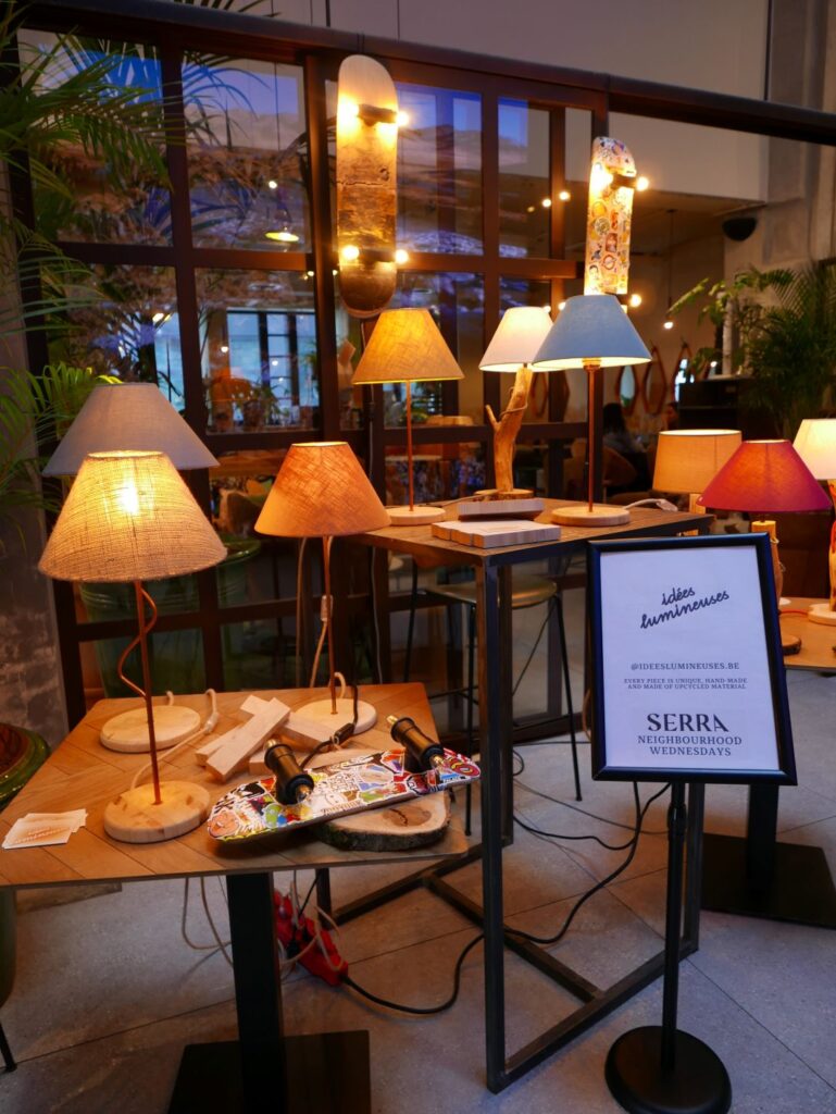 Tous les mercredis de l’été, quelques artisans exposent leurs créations et n’hésitent pas à en assurer la présentation et à en donner l’histoire et les explications. Ainsi, nous avons taillé un brin de causette avec les artisans Ben et Mitch de la petite entreprise artisanale « Idées Lumineuses ». D’originaux luminaires essentiellement basé sur du bois de récupération et en version pièce unique pour chaque création (https://www.instagram.com/ideeslumineuses.be/). Chose promise, chose due, bientôt, nous irons les revoir dans leur atelier et feront un reportage plus large sur ces nouveaux artisans locaux. Mais d’ici là, vu que le marché est organisé en tournante, nous reviendrons en rencontrer d’autres.
