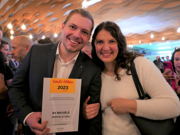 Enfin, la Découverte de l’Année va à la chocolaterie « By Michèle » dont l’atelier initial est installé à Herstal (région Liégeoise) et qui vient d’ouvrir une boutique à Liège dans le quartier « en roture ». A la manœuvre, Christophe Prunier (25 ans) et sa compagne Coralline Zoumis (28 ans). Alors qu’ils ont tous deux la même formation de pâtissier-chocolatier, lui est responsable du chocolat et elle des pâtisseries. Mais tous deux ont eu la même joie de découvrir qu’ils étaient élus « Découverte de l’année » : Quelle surprise ! On ne s’y attendait pas du tout, disent-ils en cœur. L’atelier d’Herstal est en fonction depuis trois ans mais Il n’y a pas encore six mois que nous avons ouvert notre magasin qui est aussi salon de dégustation et nous voilà déjà remarqué par le Guide Gaul&Millau ! Cela va vraiment nous booster pour continuer ! C’est vraiment le coup de pouce le plus inattendu mais aussi le plus utile pour nous.