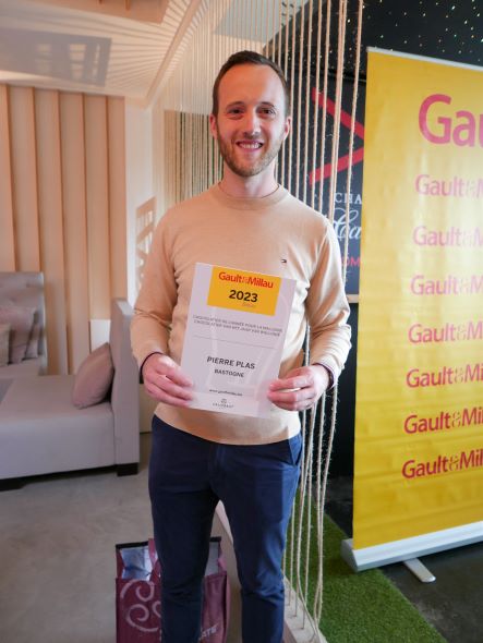 En Wallonie, c’est à Bastogne que se trouve le lauréat 2023, Pierre Plas. Un chocolatier qui travaille de la fève au cacao et qui maîtrise les grands crus ou encore des ganaches à l’intensité dense et bien marquée sur des associations personnalisées comme des caramels fruités et colorés du meilleur effet/goût. Ce prix me fait grand plaisir, dit-il car on ne s’attend jamais à de telles reconnaissances. Je suis assez exigent sur les origines des fèves mais aussi sur le travail final et si je vois des chocolats qui ne sont pas au top, je préfère les mettre en dégustation au magasin plutôt que de les vendre. La praline qui semble avoir le plus été appréciée par Gault&Millau est une praline avec praliné, noix de Pecan et gelée de fruit de la passion. J’aime les associations fruits/chocolat et les couleurs qui attirent l’œil.