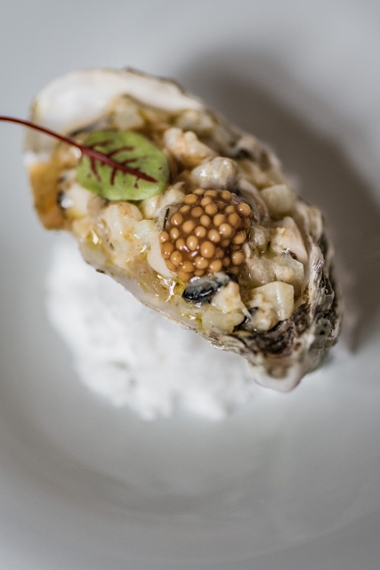 Huître creuse et asperge blanche selon Maxime