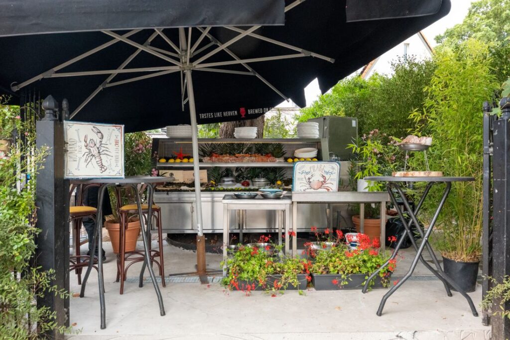 A l’extérieur, un banc d’écailler propose huîtres, coquillages et suggestions en fonction des arrivages. Là aussi, plus de choix devrait apparaître dans les semaines à venir.