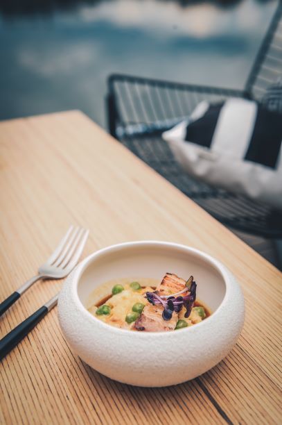 Une bonne nouvelle que cette décision prise par le concepteur du projet, Eric Bellaiche suite à la venue de Tristan Martin (Château de Grandvoir) qui, avec Robin Haquenne, avaient très vite annoncé le sold out de leur repas du 15 septembre dernier. Éric Bellaiche a donc décidé d’habiller de façon esthétique et transparente La Terrasse pour affronter le climat automnal. Juste de quoi pouvoir prolonger son singulier événement sur l’eau de la Meuse dans un environnement de rêve particulièrement spectaculaire.