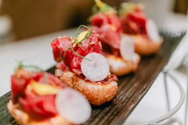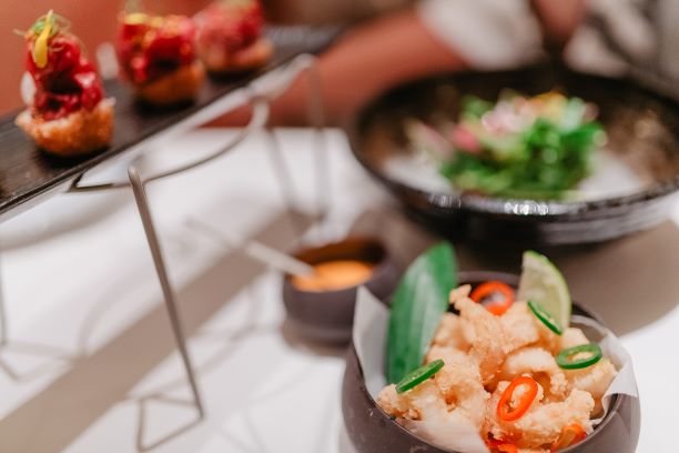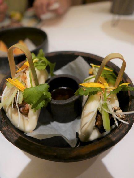 A titre d’exemple, nous y avons dégusté de singuliers calamars croustillants à la mayonnaise shichimi, un crispy rice au bœuf wagyu, un canard laqué aux agrumes, le mini-burger au ris de veau et sa fameuse béarnaise de homard, un bao aux spare ribs laqués ou encore un original pain perdu et sa glace au sésame noir.