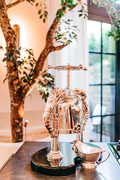 Côté restaurant gastronomique, on a vu que l’impressionnante presse à homard comme celui-ci, servi en plusieurs services, ont suivi le Maître ainsi que sa langoustine flambée au saké sur galet chaud ou encore son fameux turbot rôti à l’arrête et béarnaise d’huître. Côté flacons, une grande cave à vin vitrée est installée entre le Lounge Bar et la salle principale du restaurant. Au bar on concocte de délicieux cocktails. Et comme avant, une ou deux salles privatives sont aussi disponibles en cette belle et prometteuse Villa Lorraine by Yves Mattagne.