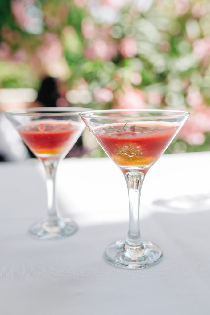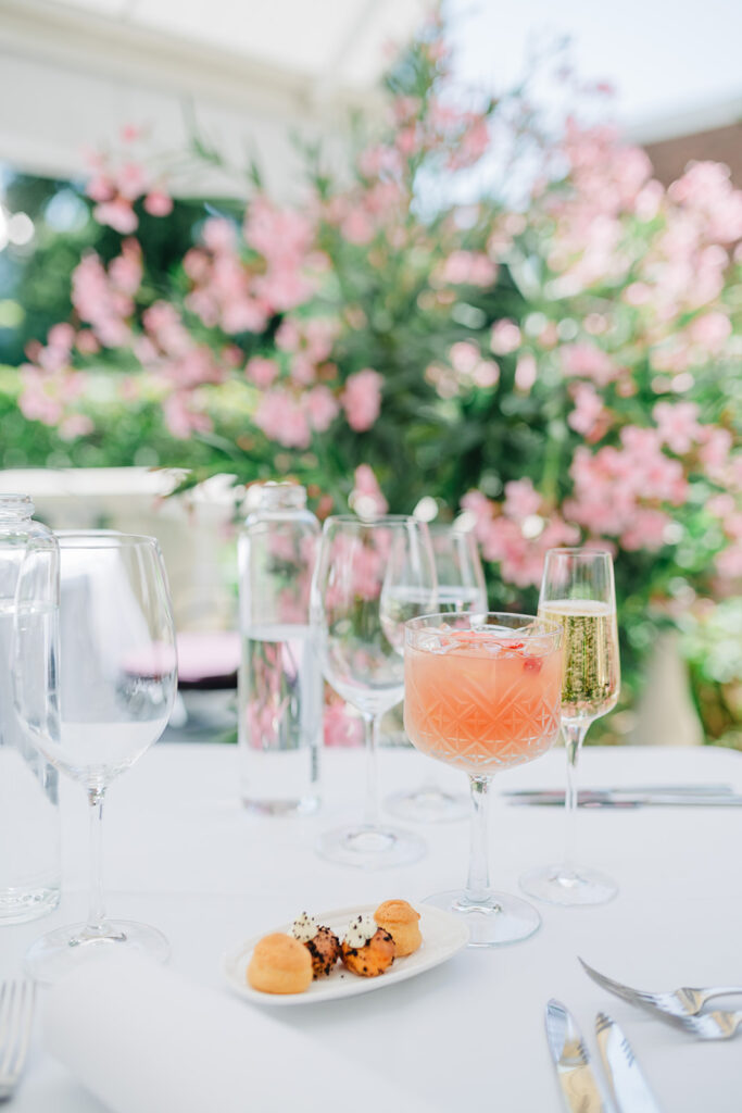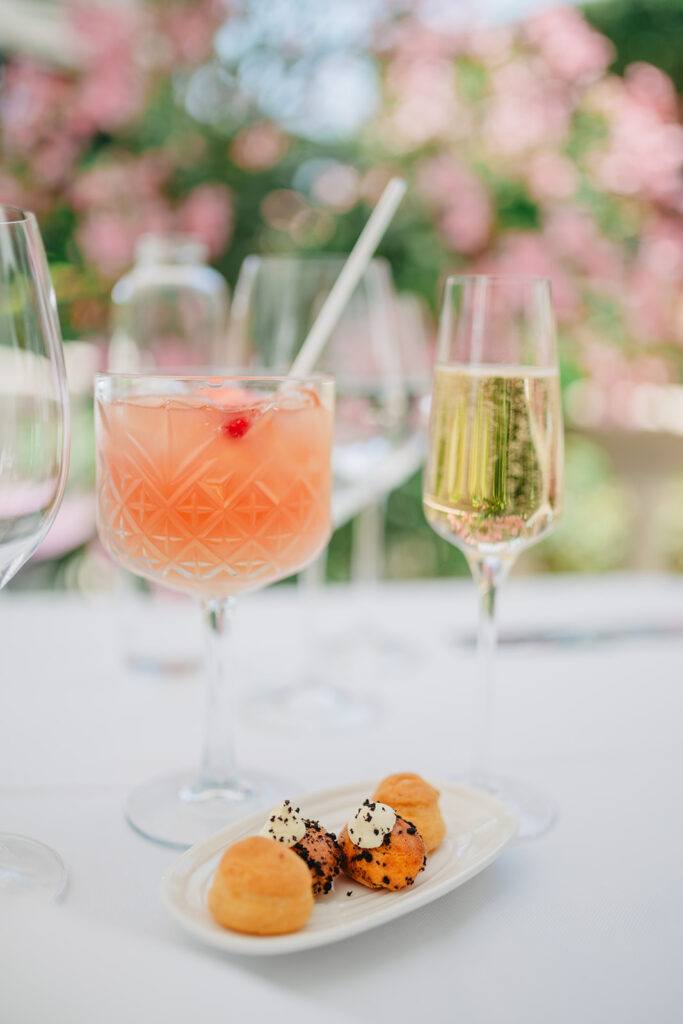 Après un apéritif sans alcool pour l’une et une coupe de champagne pour l’autre, avec deux petites mises en bouche, voici le détail de notre Menu Signature d’été au Brugmann :