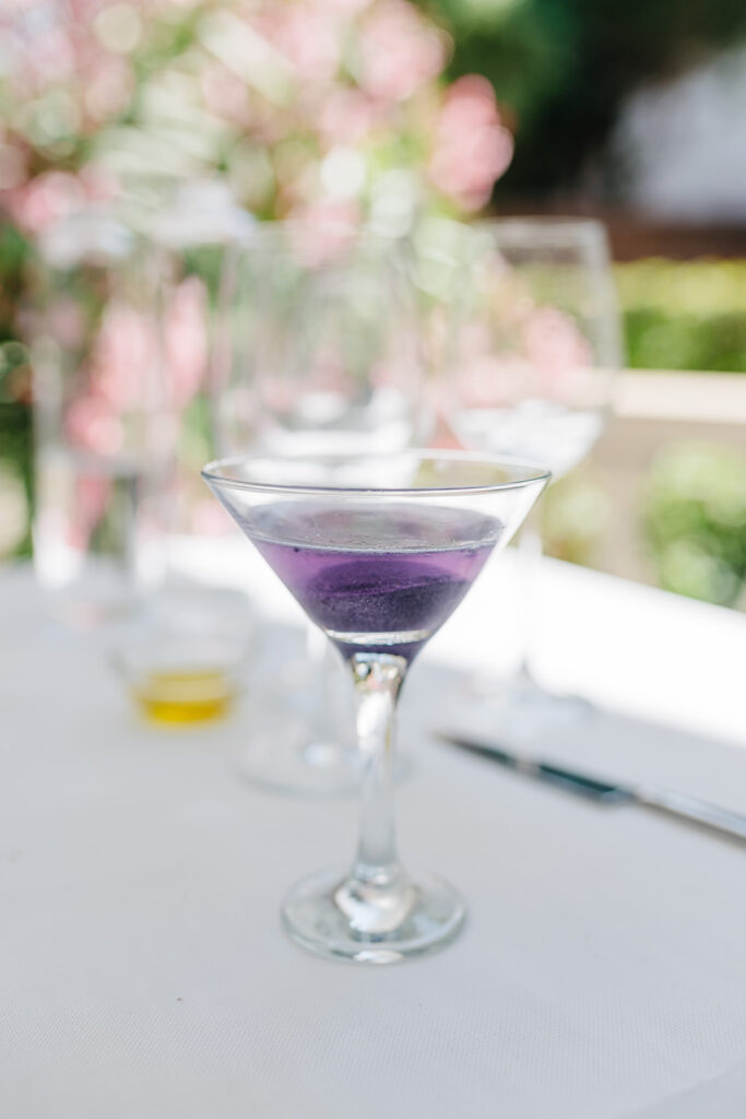 En trou normand, un sorbet à la violette fait maison que l’on peut choisir avec ou sans alcool (vodka).