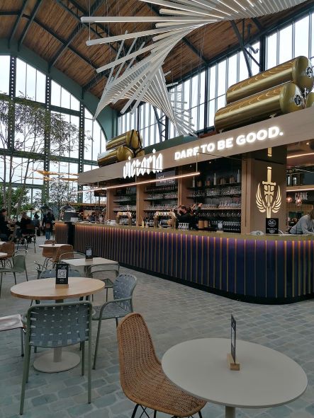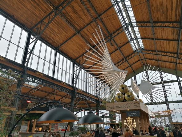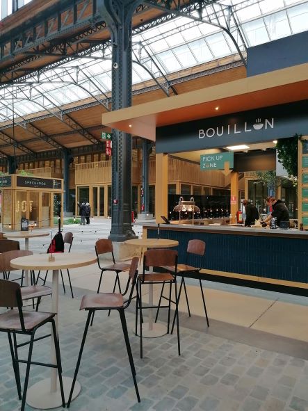 Ce ne sont pas moins de 4 hectares qui accueillent ces bâtiments historiques depuis 1907 et n’étant autres que l’ancienne gare de marchandises de Bruxelles. Restaurés par plusieurs bureaux d’architectes successivement en 2016 puis en 2020, cette immense structure métallique accueille à la fois le Food Market, divers commerces ou encore des bureaux et espaces de travail. Autour du vaste bar, différentes tables et chaises permettent à 450 personnes de s’attabler et de découvrir cette nouvelle approche du street food local.