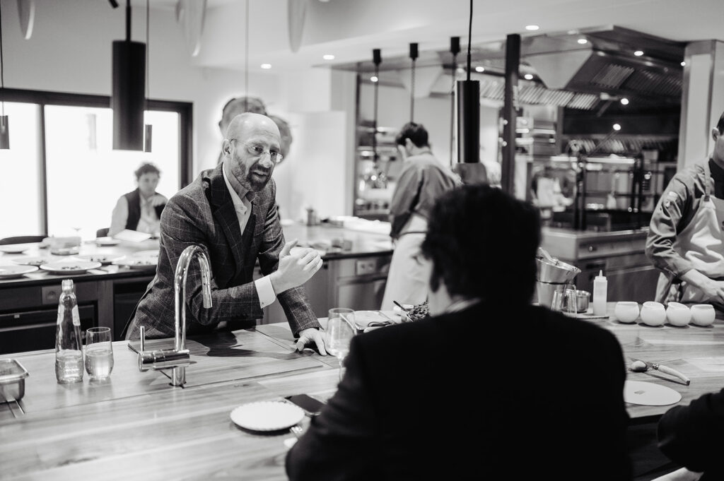 Autre comptoir-cuisine où s’installer seul, face au chef (Christophe Hardiquest et sa brigade) en action : le Restaurant Mensa à Woluwé-St-Pierre.