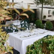 Autre table, mais pas au comptoir, où s’installer seul face, ici, à l’un des plus beaux jardins de Bruxelles : sur la terrasse du Brugmann (en été et pour un déjeuner hyper démocratique). A conseiller par beau temps !