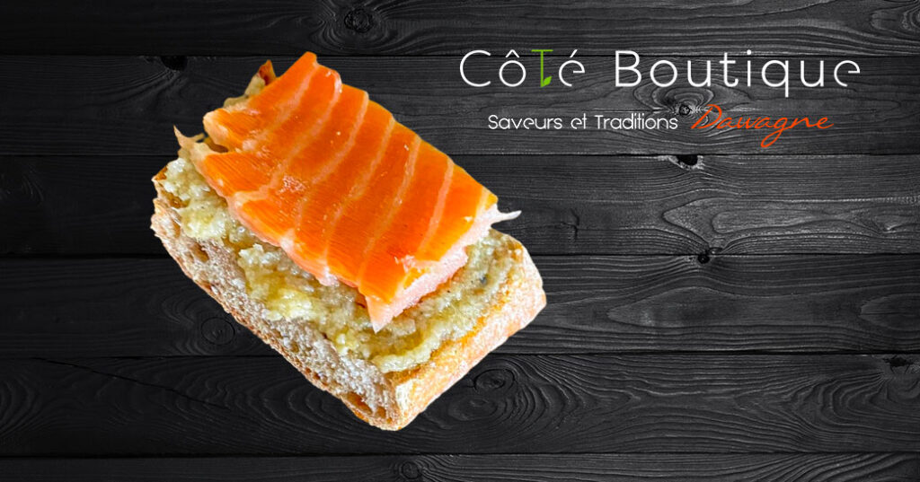 Notre dernière nouveauté est le Plateau garni de l’Atelier. Nous y proposons un mix de nos spécialités autour du saumon auxquelles nous ajoutons des gambas, crevettes et autres garnitures pour que les clients puissent en faire un vrai repas de fêtes toute l’année.