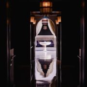 Placer une tuile au chocolat sur la chantilly Amaretto. Saupoudrer de paillettes d’or et ajouter éventuellement une pluche de feuille d’or.