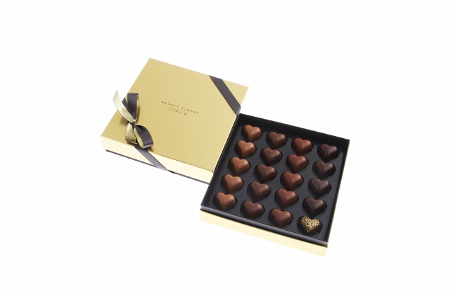 COEUR D’OR : 29,9€ le coffret de 20 cœurs – Édition limitée – Disponible dans les boutiques Benoît Nihant.