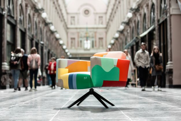 Le leader du canapé « tailor-made » invite Oli-B. à faire parler son univers sur l’un de ses nouveaux modèles. Le fauteuil pivotant Butler se pare ainsi des couleurs et du style si caractéristique de l’artiste belge, une pièce unique et inédite aux couleurs pop.