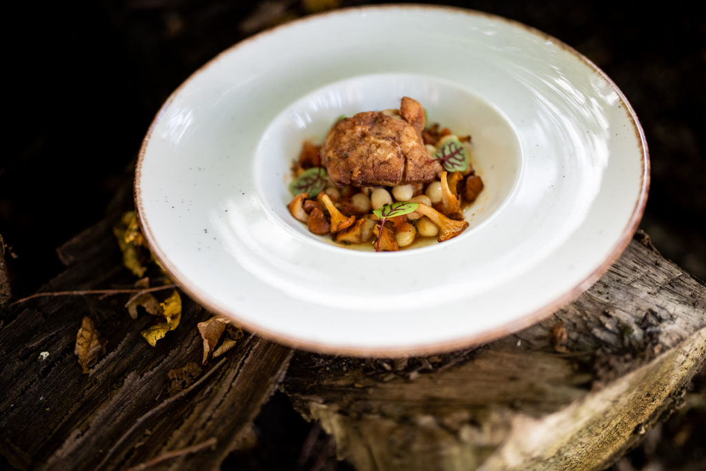 Noix de ris de veau rôtie, haricot coco, girolles, tomate