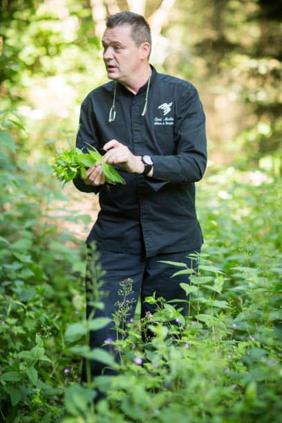 « Secondé par une équipe tout acquise à sa philosophie, le chef René Mathieu démontre, jour après jour, avec patience et simplicité, tout l’attachement qu’il a à sa terre, à ses forêts, à la nature qui l’entoure. Ce grand chef philosophe ne se contente pas de quelques mots pour convaincre de la multitude de possibilités végétales qu’offre notre environnement. Il cueille lui-même, chaque matin et même parfois l’après-midi, les herbes et plantes sauvages qu’il connaît par cœur quand ce ne sont pas ses collaborateurs qui le suppléent deux fois par jour à la cueillette des légumes directement au jardin de Sandrine. Les jus, saucés par le chef lui-même, ont une telle profondeur que ceux-ci ont du mal à laisser entendre que seuls les végétaux composent les assiettes. Si c’est le confinement qui a fini de le convaincre d’aller au bout de sa réflexion gastro-botanique, ce sont les goûts maîtrisés qui convainquent les clients émerveillés d’y revenir, et ce sont ces mêmes goûts qui convertissent les omnivores à cette gastronomie végétale à laquelle il ne manque rien. Cette cuisine colorée nous fait assurément entrer dans une autre dimension et fait de ce grand chef, René Mathieu, un très Grand Chef de l’Année 2021. »