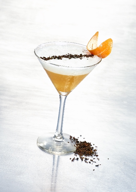 Ingrédients : 4cl Chivas Regal 18 years, 1,5cl vermouth La Quintinye rouge, 2cl de jus de citron frais, 4cl de thé Ceylan Souchong Dilmah (infusion 5 minutes), 1cl sirop d’orgeat Giffard, 2cl de saumure de pois chiche.