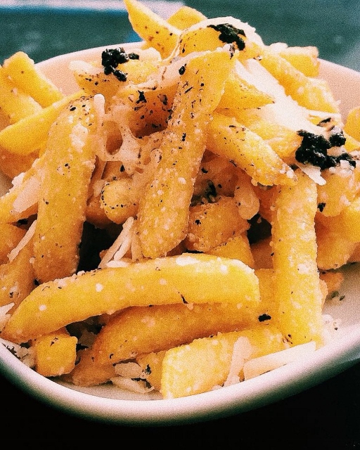 A la carte côté cuisine : les préparations du chef Kyrkos Zisis et d’autres artisans. A titre d’exemple : humus, planches de salaisons ou de fromages affinés par Julien Hazard, mini burger à la burrata, risotto au parmesan, foie gras maison, un poulpe grillé, des frites au sel de truffe et des desserts que signe le brillant pâtissier … Brian Joyeux !