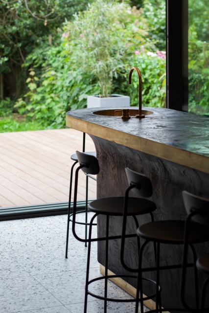 A l’aménagement des lieux : élégance et raffinement dans un esprit art déco revisité, sol en granito, banquettes en cuir, comptoir fuselé et table haute pour les dégustations, lambris en bois d’acajou, laque dorée aux murs, luminaires design personnalisés, coin salon avec tables basses et fauteuils cosy … un espace très joliment personnalisé à l’atmosphère singulière ne ressemblant à aucun autre. En « plus » tout aussi attractif : la terrasse urbaine en devanture et un petit jardin à l’arrière. Auteur du décor : le bureau d’architectes d’intérieur anversois Pinkeye.