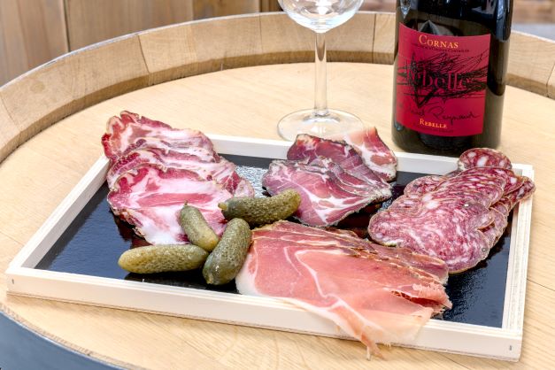 Les charcuteries : Jambon fumé du Jura (Thaurin), Bresi du Jura (Thaurin), Lard fumé du Jura (Thaurin), Jambon du Vercors (Limouches), Saucissons du Vercors (Limouches), Jambon persillé de Bourgogne