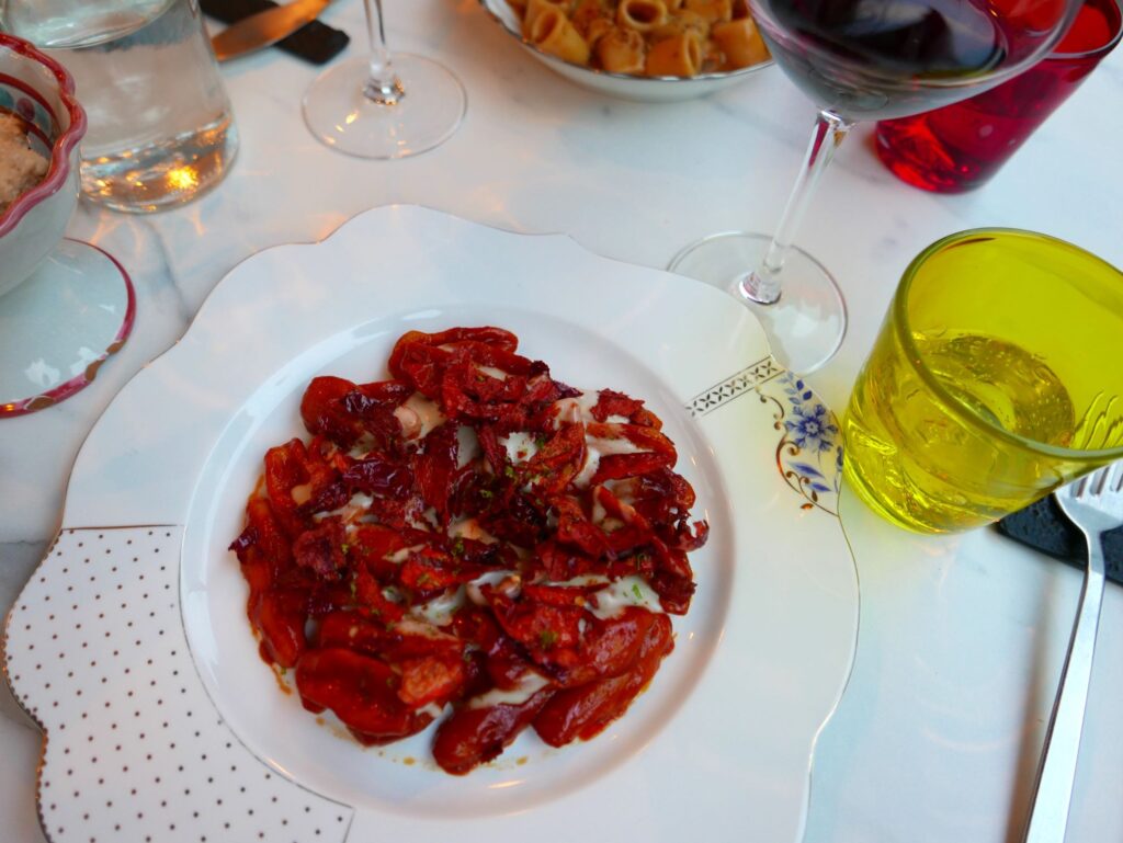 Profitant des beaux jours et de la très animée terrasse urbaine (réservation incontournable), nous nous y sommes attablés pour un dîner au menu plus élaboré que le lunch du midi. Ici, le soir venu malgré que la cuisine soit tout aussi respectueuse des souvenirs culinaires d’enfance des deux italiens, hommage est rendu à leur région d’origine qu’est la Basilicate. Mais aussi, à d’autres régions de la Grande Botte et surtout aux produits de là-bas, le plus souvent, revus selon l’interprétation d’Alessandro.