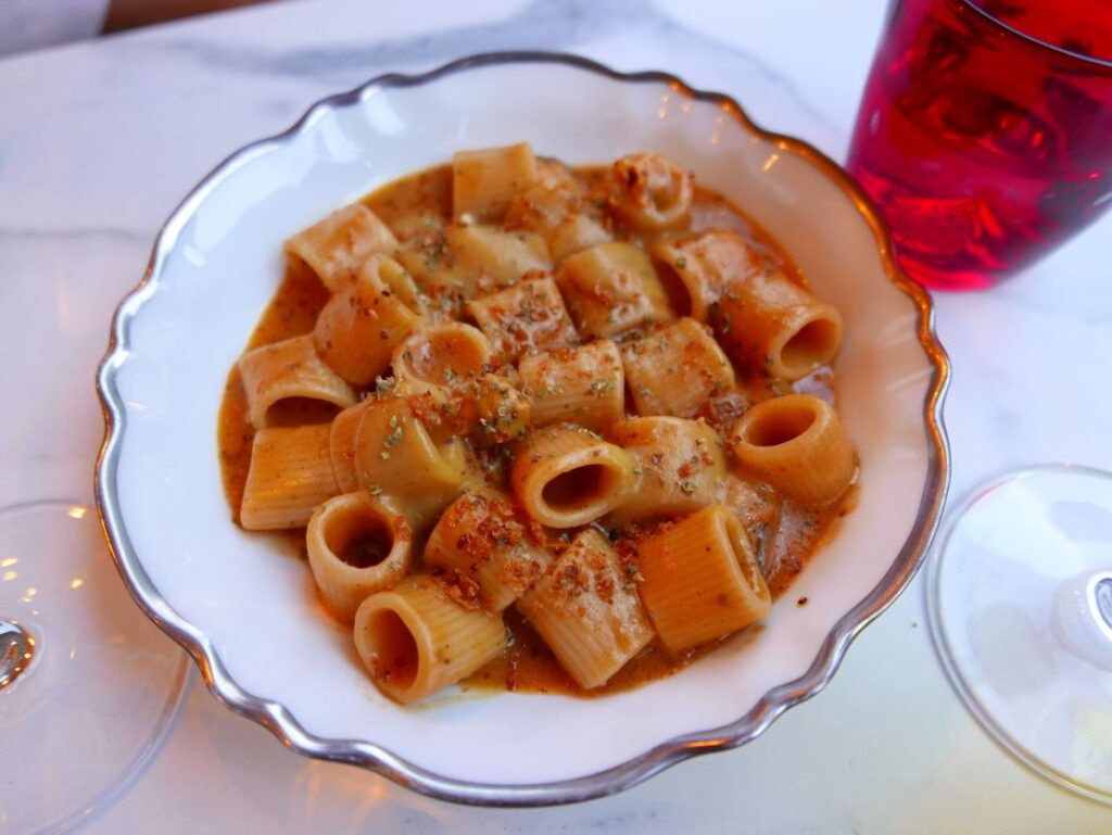 En second, deux types de préparations de pâtes, dont les pâtes Calamarata au ragoût genovese. Ici, la générosité du chef faisant son office mais la gourmandise et la curiosité l’emportant, nous avons décidé de nous partager le plat principal qui était, fort heureusement un poisson (daurade).