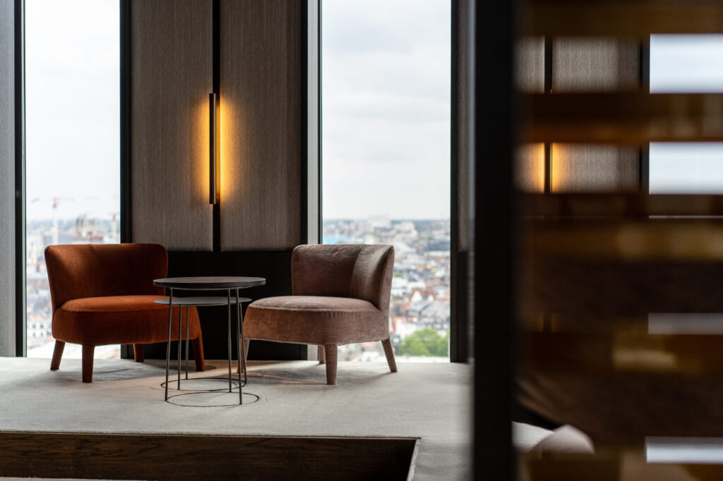 « Le neuvième étage du musée de l’histoire et de la culture d’Anvers (MAS) abrite des chefs d’œuvre d’un genre bien particulier. C’est ici que le chef autodidacte Viki Geunes a établi Zilte. Savourez un moment riche en découvertes et en émotions, avec une vue imprenable sur le port et la ville. Les parfums de la mer sont omniprésents chez Zilte, qui signifie « salin », la saveur et l’odeur de la mer en néerlandais. Viki Geunes met un point d’honneur à travailler avec des pêcheurs, maraîchers et artisans locaux, ce qui ajoute un supplément d’âme à sa cuisine créative et sensible. Explorant sans relâche les limites des constructions culinaires, il poursuit aujourd’hui sa quête de l’équilibre parfait entre héritage, innovation et transmission en famille. Son épouse et leur fille veillent ainsi au confort de leurs convives dans l’atmosphère chaleureuse et intimiste de la salle, harmonieusement décorée de tons naturels, de bois et de velours. » Relais & Châteaux
